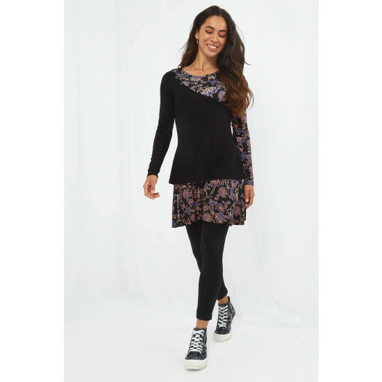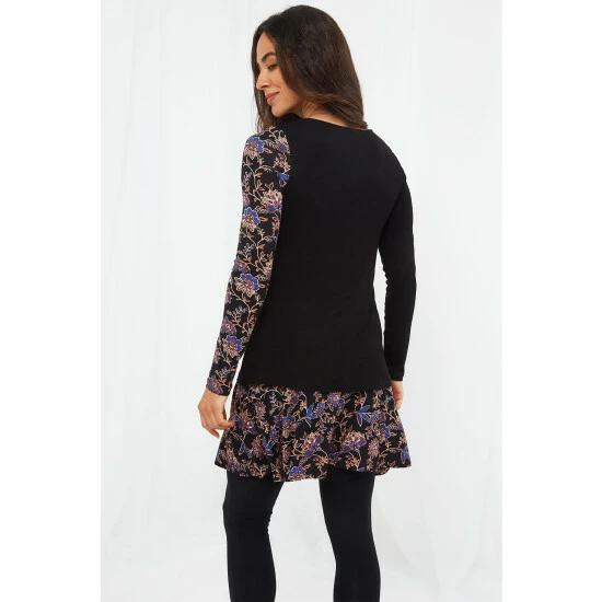 Joe Browns Black Asymmetric Ditsy Floral Leaves Print Tunic