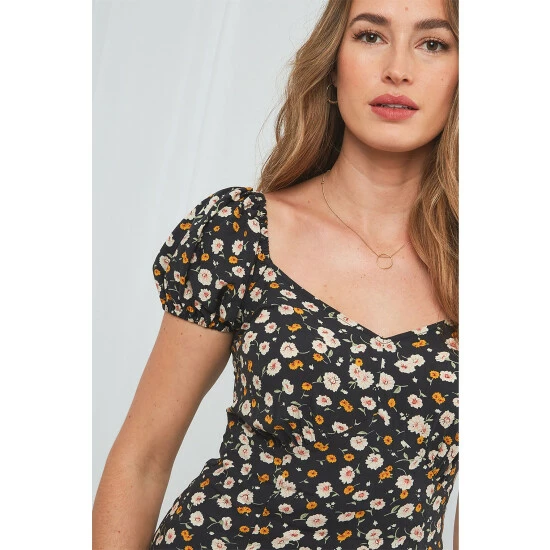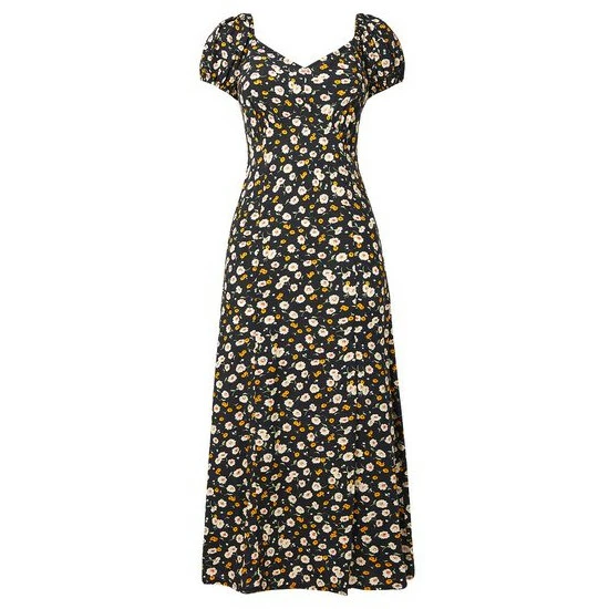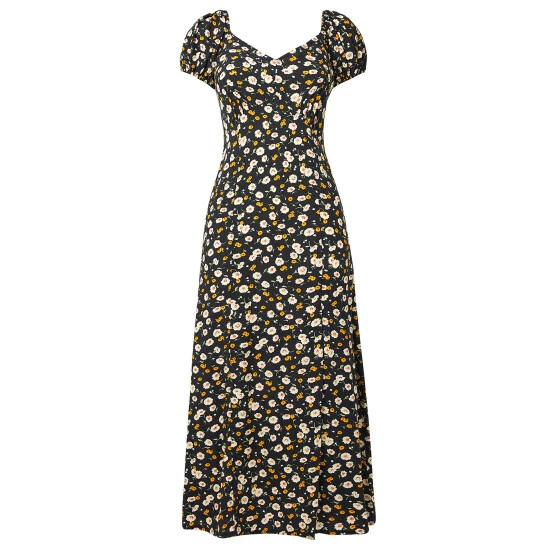 Look beautiful in buttercups with this ditsy dress. We couldn’t love its cute, feminine style any more, especially when it’s been crafted with such lovely shirred detailing and puff sleeves. You’ll feel extra confident in it too, because shaping under the bust means it’ll flatter any figure. It’s the perfect piece to add to your seasonal collection.