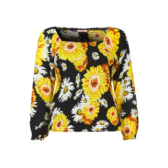 If you’re looking for a piece to wear over and over again this season, you’ve found it! This daisy top is so versatile, you can style it on or off the shoulder, making a lovely laid-back look for a spring stroll, or a more elegant evening outfit for a meal out. The shirred bodice and blouson sleeves add an extra flourish too, which you’ll just love to show off.