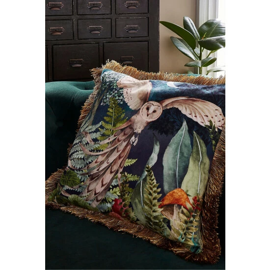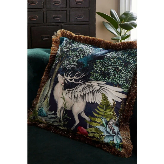 Ornate styling at its finest, this bespoke cushion is enchanting. With a remarkable owl print on the front, and a majestic stag on the back, we’ve created a home accessory that’s guaranteed to bring elegance into your space. Crafted from velvet and finished with a fringe trim, it’ll look phenomenal sat on top of the matching bed set. Measurements – 45 x 45 x 12cm.