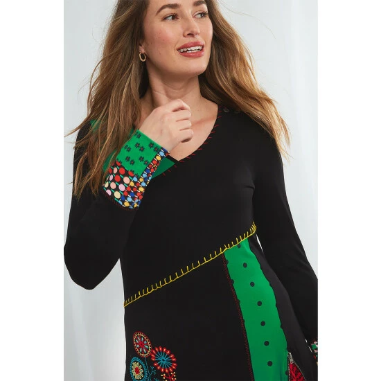 What do you get when you cross bold colour with pretty patchwork? This fun, long sleeved tunic, of course. It’s packed full of smaller, more delicate details too, from the intricate embroidery to the decorative buttons on the shoulder. In fact, every part of this fabulous tunic works perfectly together to create a truly unique look that you’re sure to love.