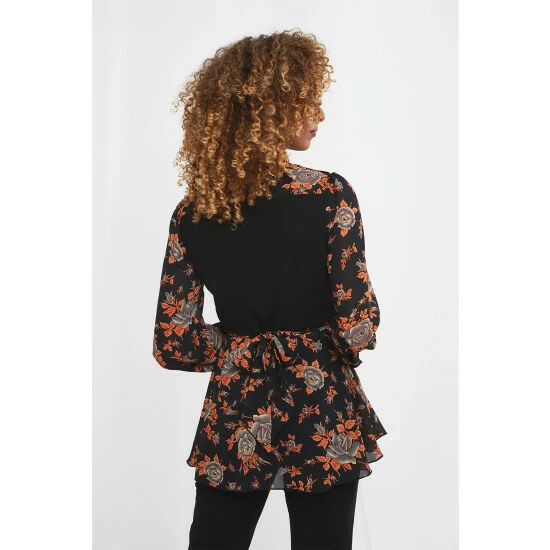 Joe Browns Black Long Sleeve Printed Autumn Floral Leaves Blouse
