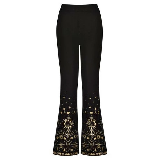 These trousers are a stunning nod back to 70s fashion. It’s the flared design and velour fabric that really throw us back. With gorgeous, gold embroidery they’re great for making a statement in any outfit, or for bringing a subtle festive touch to your winter style. Pull them on with your favourite blouse for a unique Christmas party look. Approx Length: 78cm.