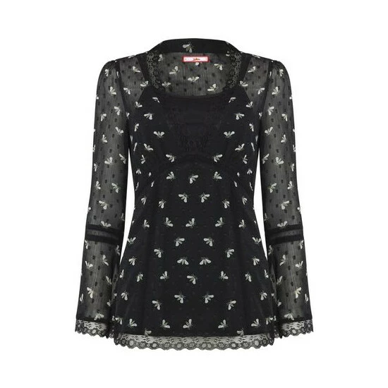Joe Browns Black Mesh Long Sleeve Lace Bee Print Top