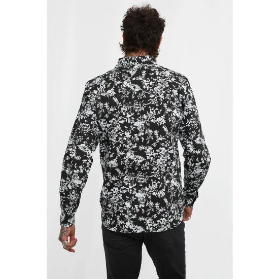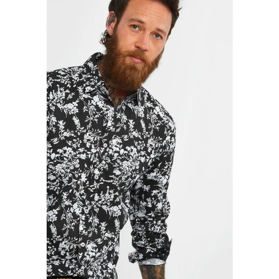 A snappy monochrome shirt with fantastic florals. Just pull it on to let the good times roll. Woven Fabric. Approx Length: 76cm.