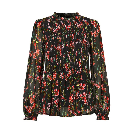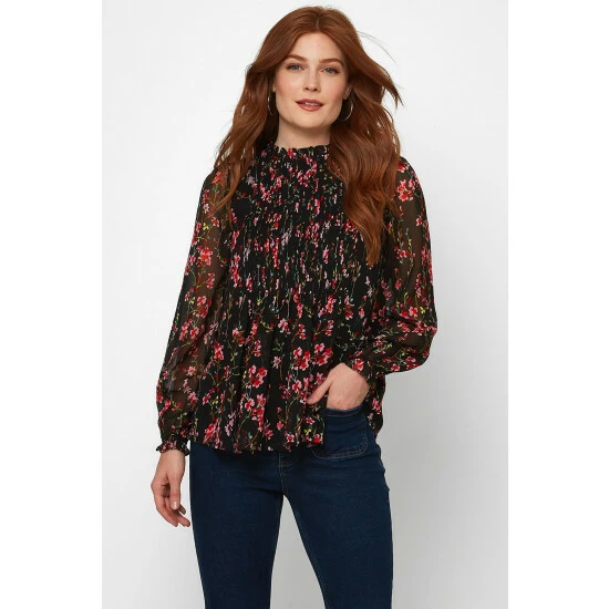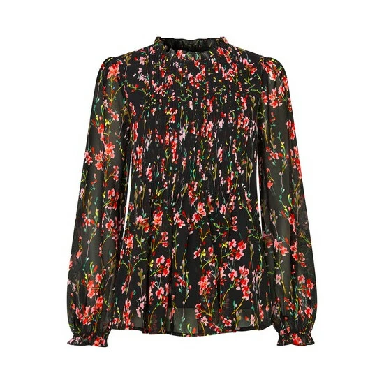 romantic floral top with beautiful pintuck details and a dainty frill collar.
