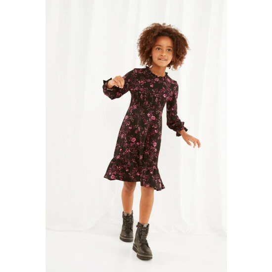 Spruce up the kids’ seasonal wardrobe with this floral dress. By adding pretty frills and shirring with such gorgeous colours, we’ve created the perfect Christmas party dress. They’ll love the supersoft feel of it too, letting them have fun all day long while still being cosy and comfortable.Approx Length: 67cm.