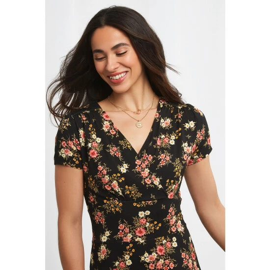 Joe Browns Black Ravishing Roses V Neck Jersey Dress