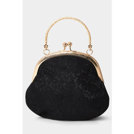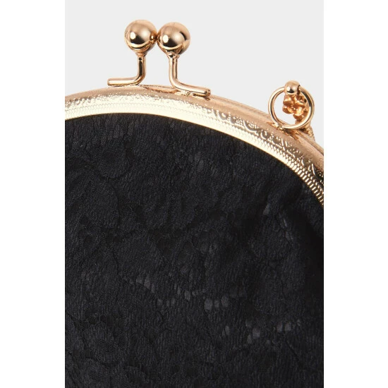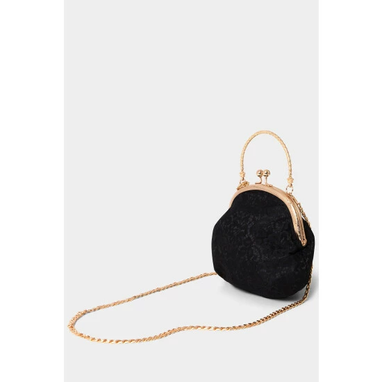 Bring a dainty, vintage feel to your evening outfits with this gorgeous lace bag. We’ve given it a beautiful handle and clasp closure for added elegance, while the internal pocket and removable shoulder chain make it practical too. Try pairing this stunning accessory with the matching shoes, for an opulent evening look you’ll love. 21.5 x 22 x 6cm. Handle 22.5cm. Strap 120cm.