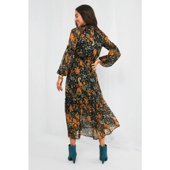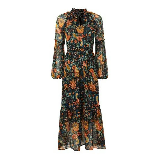 Add character to your seasonal style with this floaty V-neck dress, in rich autumnal tones.Woven Fabric. Approx Length: 130cm.