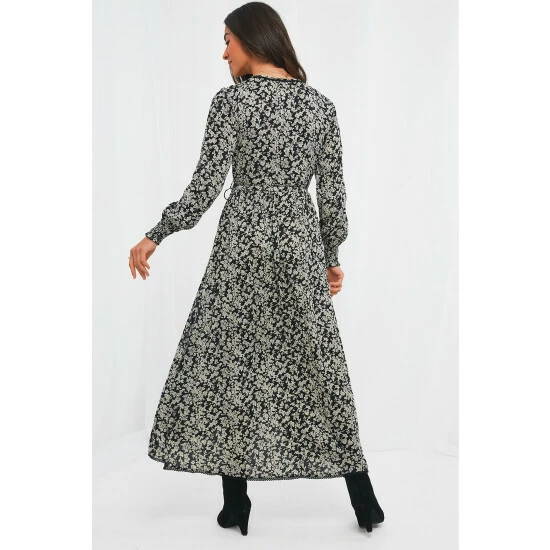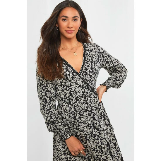 Joe Browns Black Striking V Neck Long Sleeve Dress