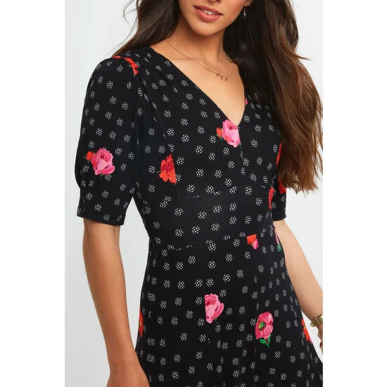 Joe Browns Black Vintage Style Floral Spotty Dress