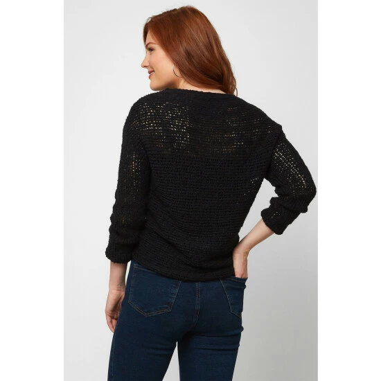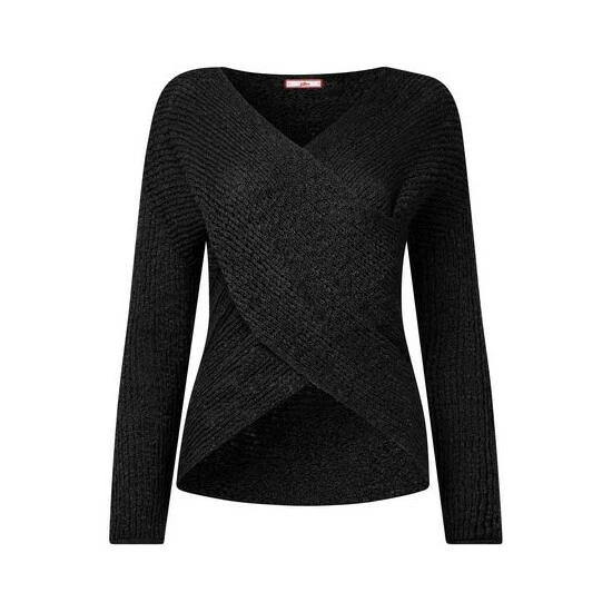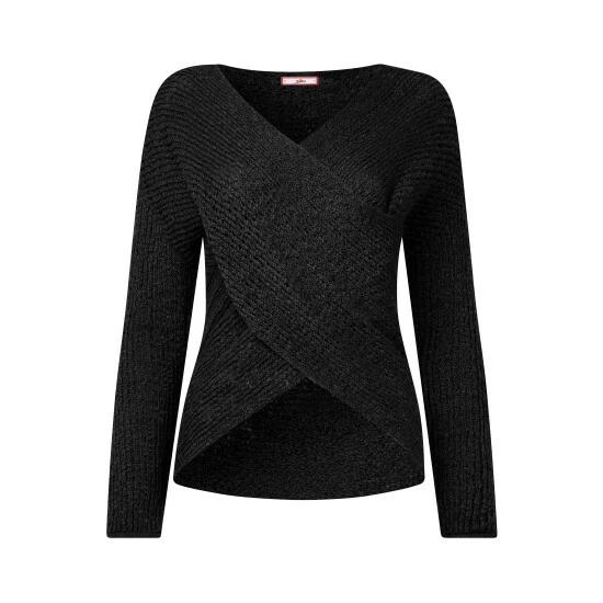 A flattering mock-wrap knit, available in two versatile colourways – perfect for layering.