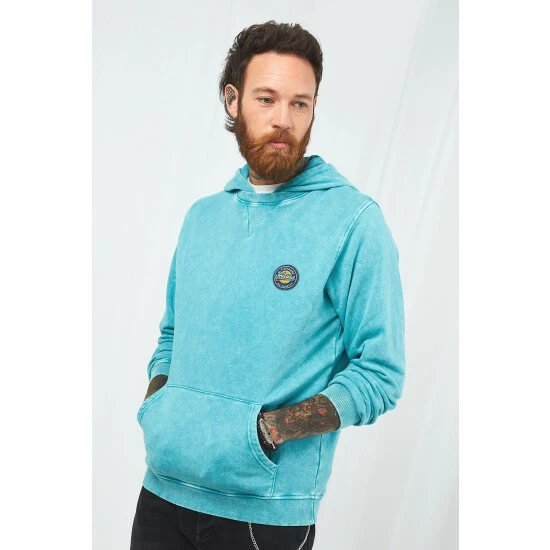 This relaxed hoody won’t let those dull days get you down – in a bold blue, it’s sure to brighten your mood whenever you wear it. The pop of colour in the badge adds an interesting point of contrast too, helping to pull out the tones of the fabric even further. Try layering it under one of our jackets to inject a lively burst of colourful energy into your outfit.