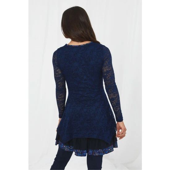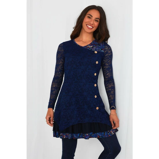Joe Browns Blue Asymmetric Wrap Button Up Lace Detail Tunic