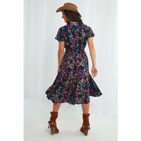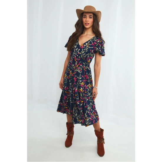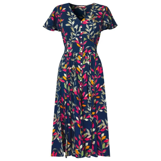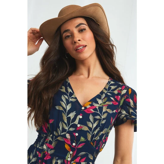 This tea dress is just made for picnics in the park and brunch out with friends. With bold colours and a beautiful botanical print, it’s so cute and dainty. Finished off with mock buttons and waterfall sleeves that give it an effortless touch of class, we love it teamed with pumps or brogues.