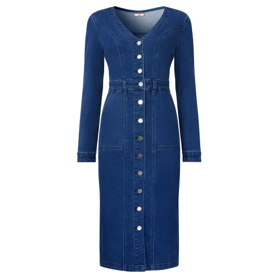 A denim dress is essential in every wardrobe, so choose this long-sleeve one. Flattering, versatile and incredibly easy to wear, this vintage inspired look has a button-through front that adds a real point of interest. You’ll love that it’s crafted from sustainable fabric too, so you can step out looking amazing while you do good for the planet. Approx Length: 107cm.