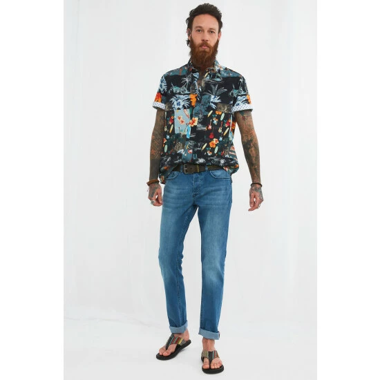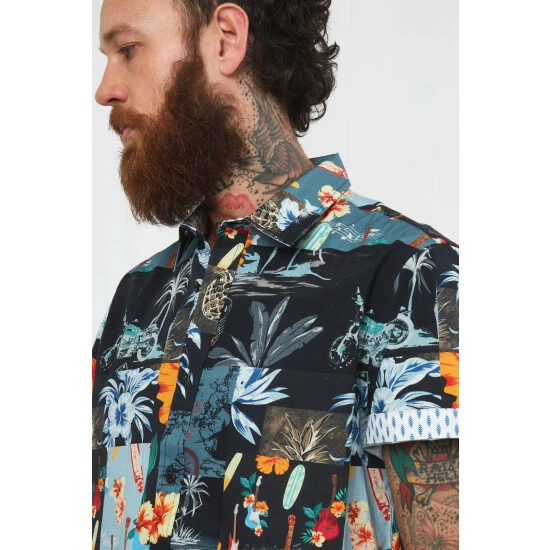 Combining some of our favourite prints of the season, we created this funky new shirt you’ll love. We took a classic short sleeve design, added a mix of guitars, surfboards and passport stamps, then threw in a splash of colour, to create this totally unique summery style. Bold and vibrant, it’s a real winner if you like doing things differently.