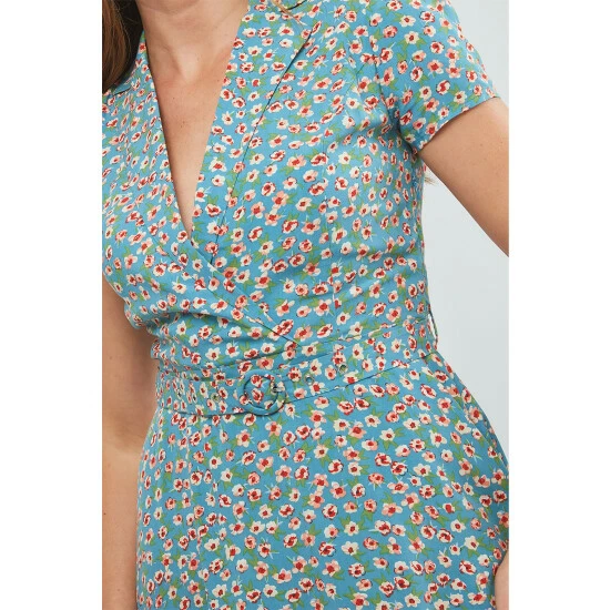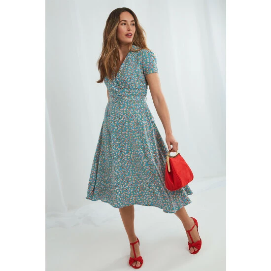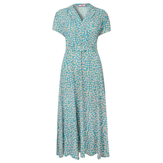 This 1940s inspired tea dress has everything you need to look the part this season. Florals, puff sleeves and a fabric belt are topped off with a collar and lapel neckline to create the perfect base for your new favourite summer look. Just add pumps or brogues to complete the vintage ensemble.