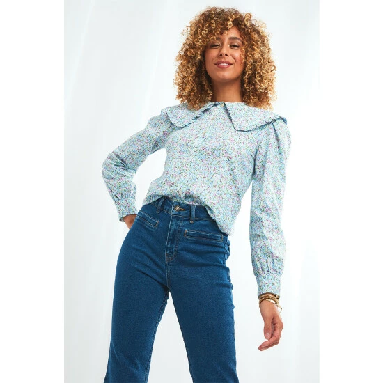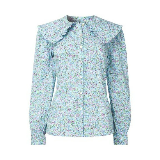 This blouse is all about mixing subtle and statement. You’re sure to love its ditsy floral print, but it’s the dramatic oversized collar that’ll really turn heads. Topped off with intricate button-through detailing, it’s the perfect piece to spice up any outfit.