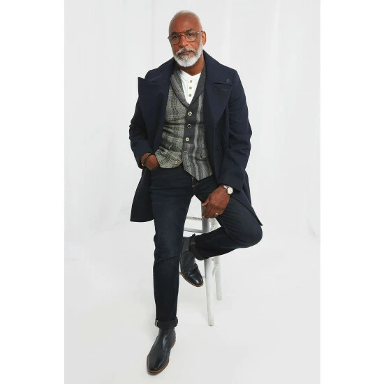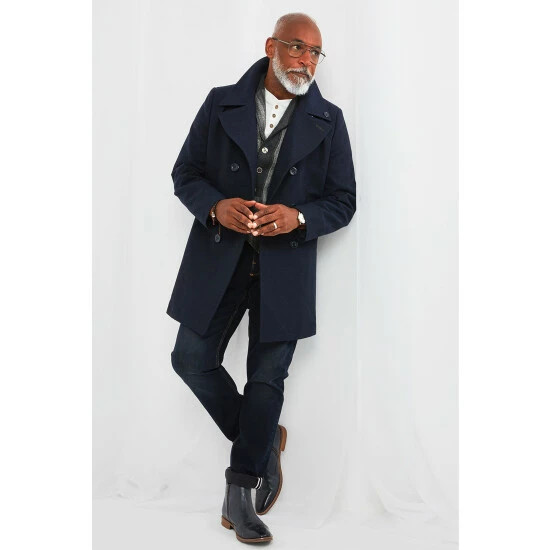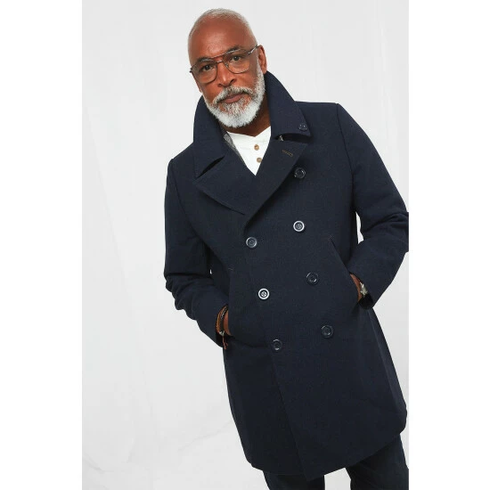In a league of its own, this double breasted herringbone coat is full of remarkable details. Woven Fabric. Approx Length: 86cm.