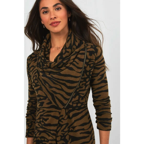 Wear this zebra print piece as a remarkable top or cosy cardi, for a unique seasonal style.Jersey Fabric. Approx Length: 80cm.
