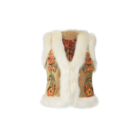 Bring boho into your winter wardrobe with this stunning, embroidered, faux fur waistcoat.Woven Fabric. Approx Length: 55cm.
