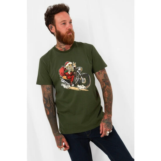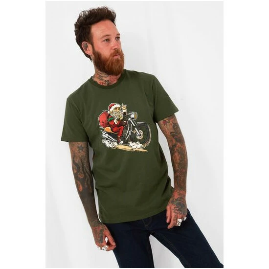 Drive home for Christmas in this fun tee, and you’ll be full of festive cheer. In a versatile khaki colour that pairs perfectly with jeans, joggers or trousers, it’s the awesome Santa print that’ll have you rushing back to that glass of mulled wine and those prezzies under the tree.Approx Length:73cm.
