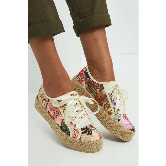 Capture the true essence of summer in these pretty espadrilles. It’s their fabulous floral print, stylish hessian sole and remarkable ribbon lace that makes them radiate seasonal vibes. With such a feminine, laid back feel, they’ll go perfectly with your favourite jeans to create a stunning, casual style.