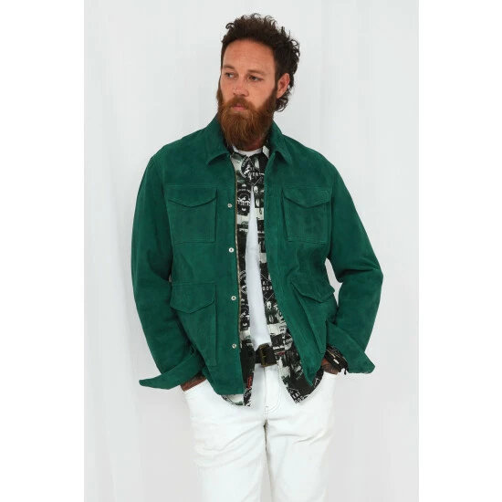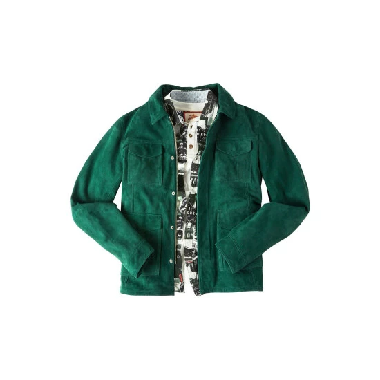 Go bold and choose this vintage, army inspired suede jacket, in a rich green colour. Leather Fabric. Approx Length: 70cm.