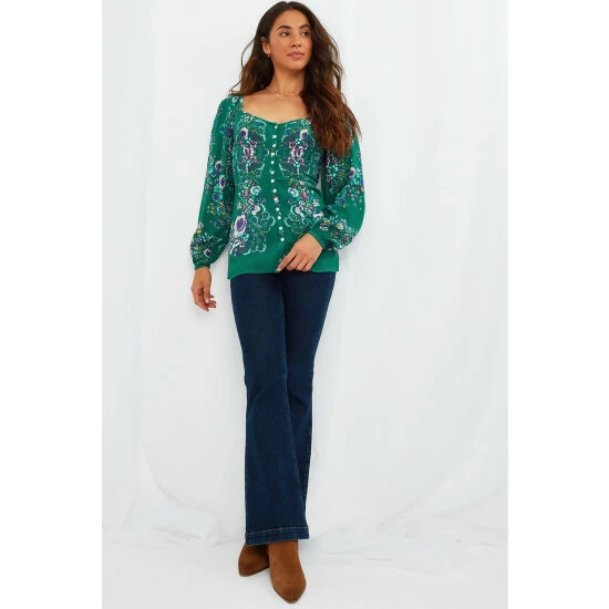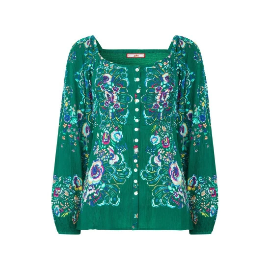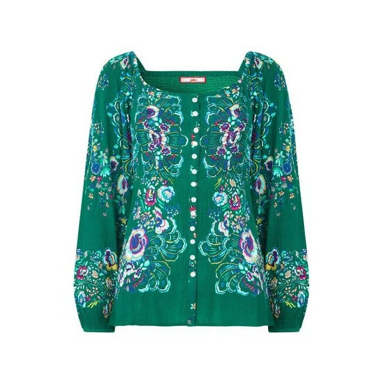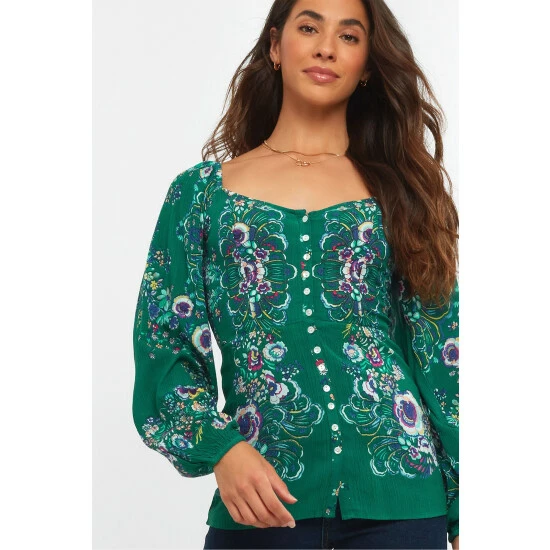 Joe Browns Green Boho Long Sleeve Button Up Floral Top