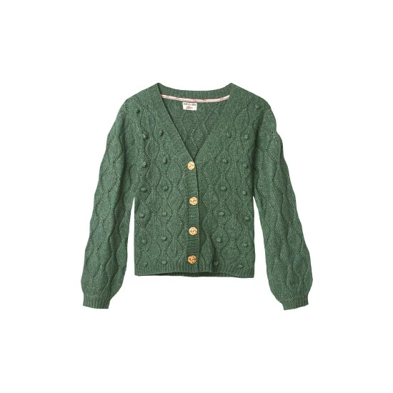 With its pom poms and wooden buttons, you’ll feel so cute and cosy in this cable knit cardi. Knitted Fabric. Approx Length: 54cm.