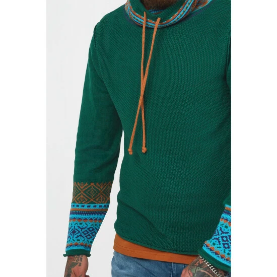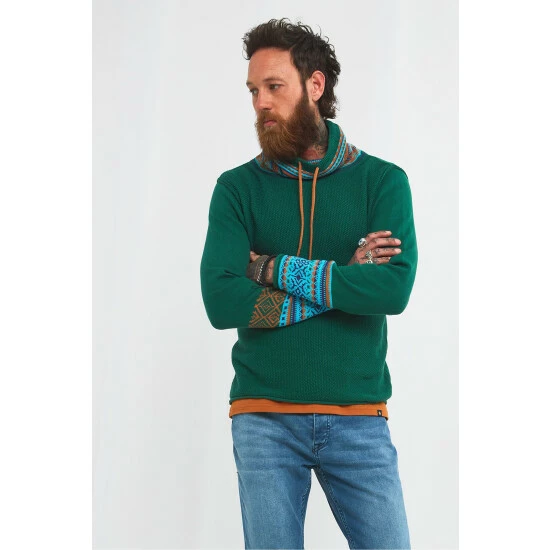 Full of funky details, this cowl neck knit has unique jacquard fabric at the neck and cuffs. Knitted Fabric. Approx Length: 70cm.