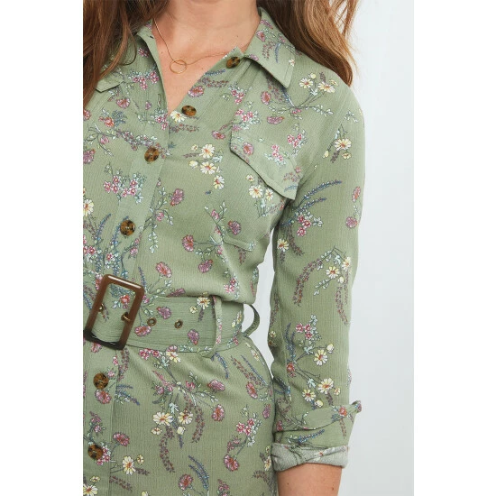Inspired by the land girls of the Second World War, we’ve created a classic button-through shirt dress with a twist. It’s the gorgeous army green material and lovely floral print that really gives this look its character. Finished off with pocket detailing and a belt that’ll cinch it in at the waist, it’s a beautiful base for a stunning look this summer.