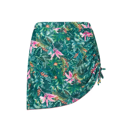 So flattering and fabulous, this swim skirt is sure to turn heads. We created the print with bold colours that look right at home by the sea, and we even used contrast pink stitching to really help it pop. Just add a matching top and you’ll love to show off the complete set, especially since they’re made from recycled polyester.