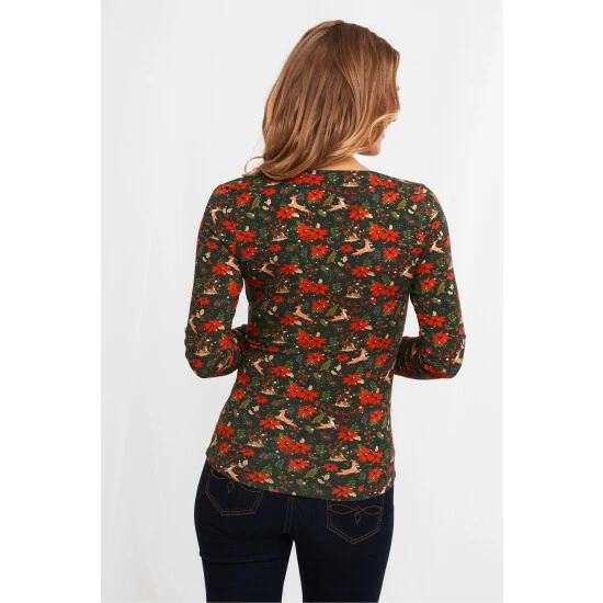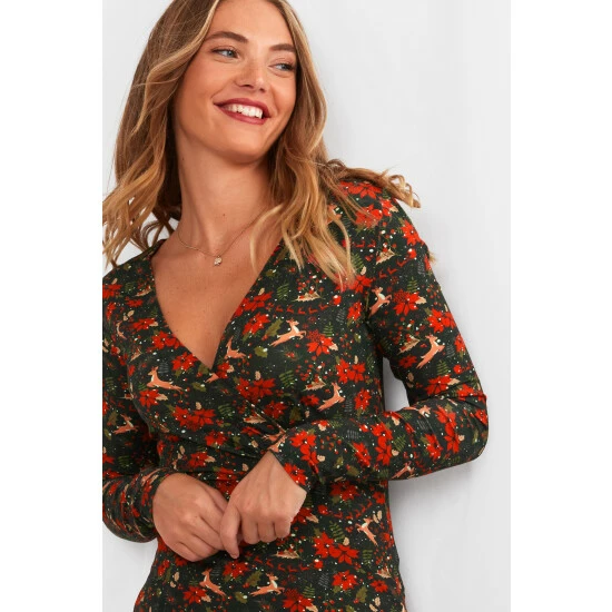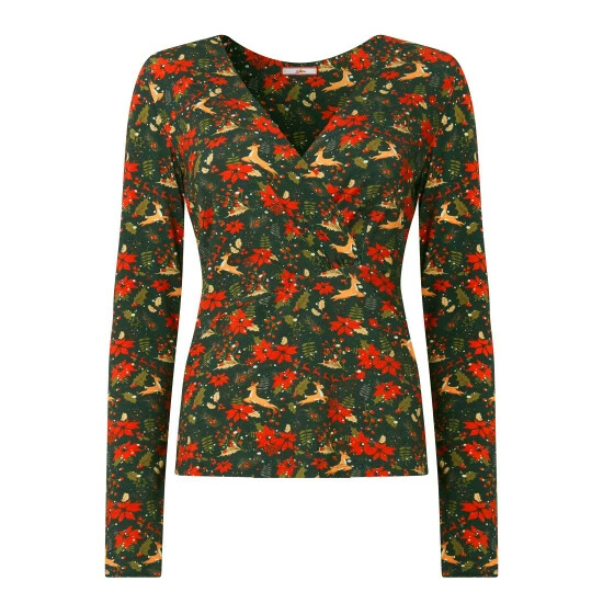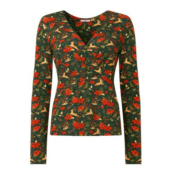 Get ready for the festivities in this radiant reindeer top. It strikes the perfect balance between fun and fashionable, since it mixes a playful print with side pleats and a beautiful mock wrap style. Warm, soft and comfy, it’s great for unwrapping prezzies under the tree, wearing to the kids’ Christmas play, or having some festive drinks with the girls. Approx Length: 62cm.