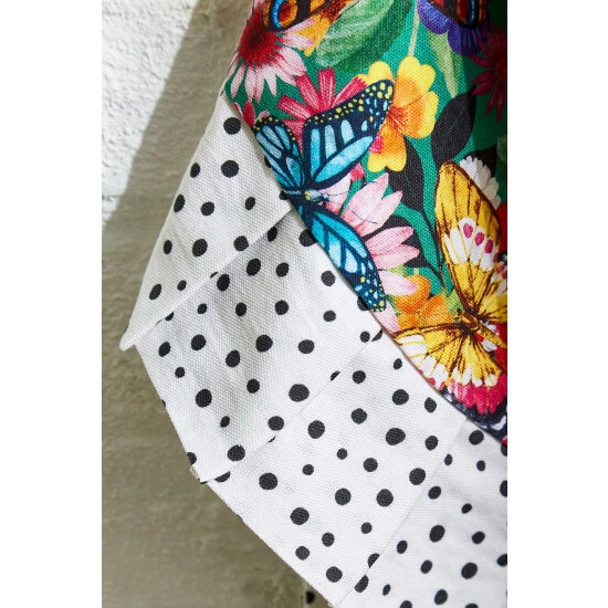 Perfect for those who love anything bright and bold, this apron is sure to catch your eye. By combining florals and polka dots, then finishing it up with a pretty frill trim, it’ll bring real vintage vibes to your kitchen. Just add the matching oven glove, tea towels and table runner for a truly coherent look. Size – 90 x 75cm.