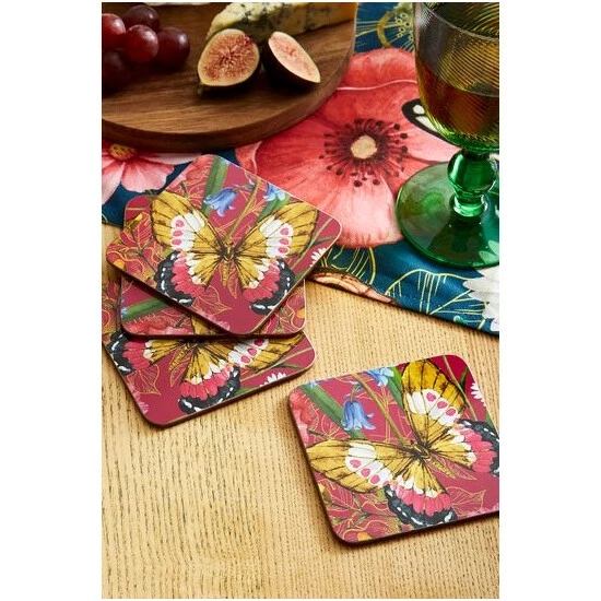 Featuring a stunning butterfly in incredible, vibrant colours, these coasters are sure to bring your table to life. One of our favourite bespoke designs of the season, you won’t find another like it. They’ve been finished off with a cork back too, so they’re practical as well as pretty. Just pair them with the matching placemats to enjoy the full set. Size – 10 x 10cm.