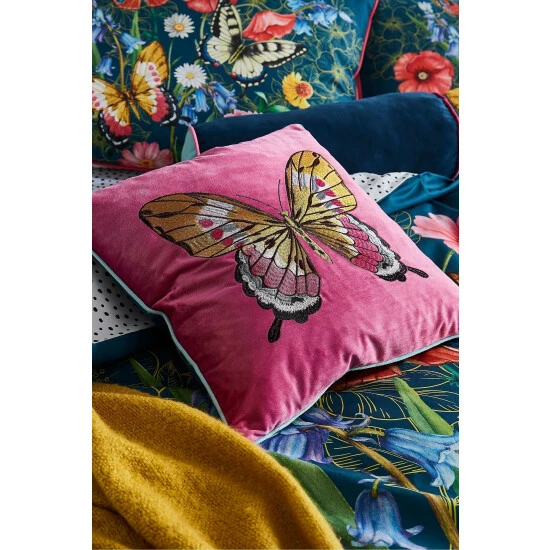 Cushions are great at showing your personality through your style, and this one is no exception. With a stunning embroidered butterfly on the front, and a pretty floral pattern on the back, you’ll always have a design to match your mood. Finished with beautiful embroidery and a lovely velvet fabric, it’ll effortlessly bring bunches of comfort and character to a space. Size – 45 x 45cm.