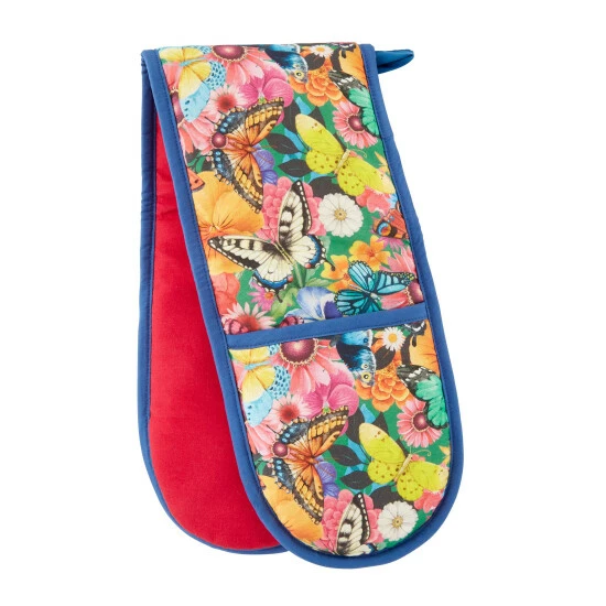 With such an extraordinary butterfly print, this double oven glove is serving up a huge portion of bold style. Everything from the bright colour palette to the contrast trim comes together perfectly to make it a really remarkable accessory. Why not complete the set with the matching apron, tea towels and table runner? Size – 94 x 18cm.