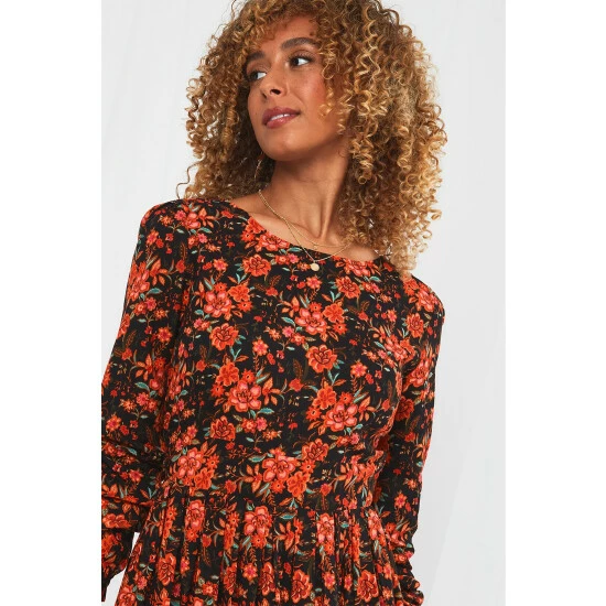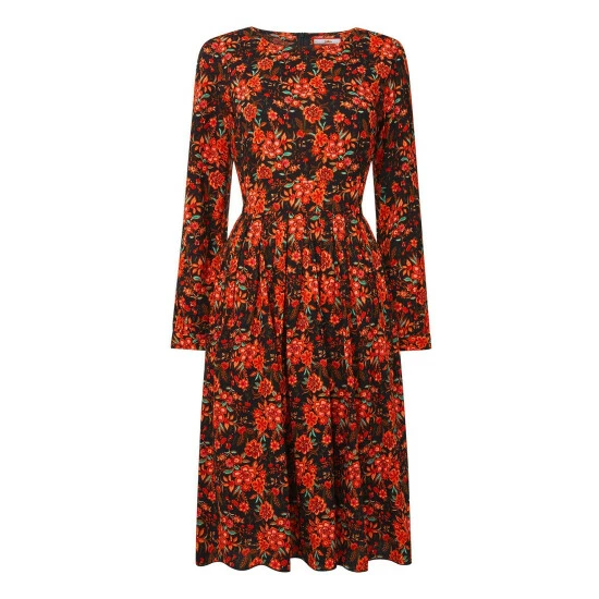 Joe Browns Orange Autumnal Floral Balloon Sleeve Dress