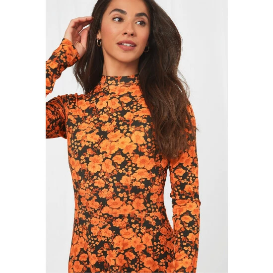 Joe Browns Orange Autumnal Funky Floral Long Sleeve Dress