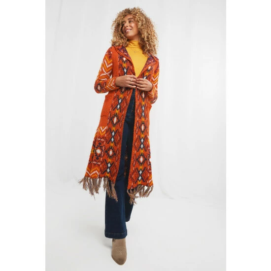 The epitome of boho fashion, this hooded cardigan is a sure way to keep the compliments rolling in. Packed with all-important style differences, it brings together a gorgeous Aztec print and plenty of fabulous fringing. Add this cardi to your wardrobe, and you’ll stay snug all winter long.