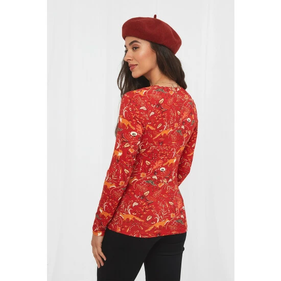 Check out the cute little guy on this pretty top – he’s ready to join your autumn adventures. Jersey Fabric. Approx Length: 62cm.