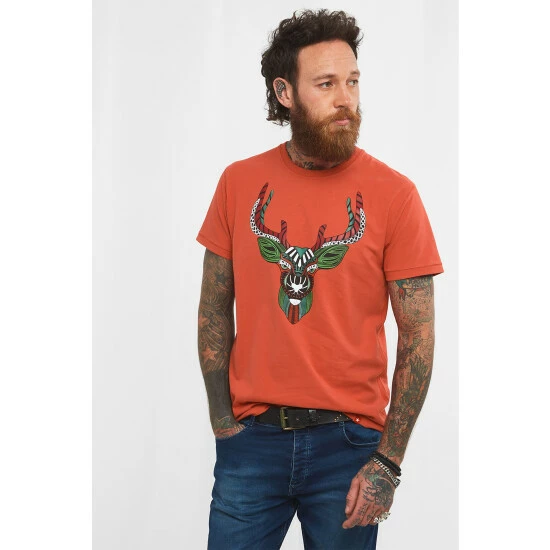 Joe Browns Orange Geometric Stag Graphic Print T-Shirt