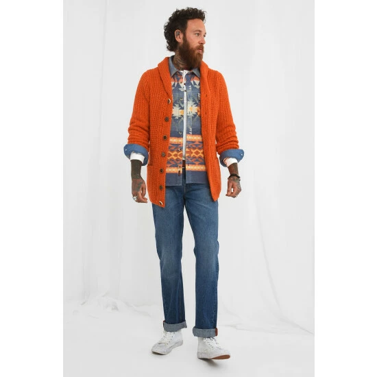 Take our fisherman jumper, turn it into a cardigan, and this is the brilliant, bold result. Knitted Fabric. Approx Length: 72cm.
