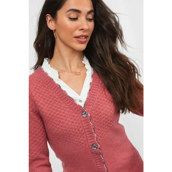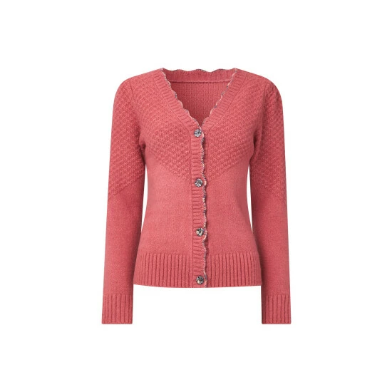 Bold, beautiful and oh so charming, you’ll look pretty in pink wearing this retro cardigan. Knitted Fabric. Approx Length: 56cm.