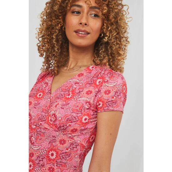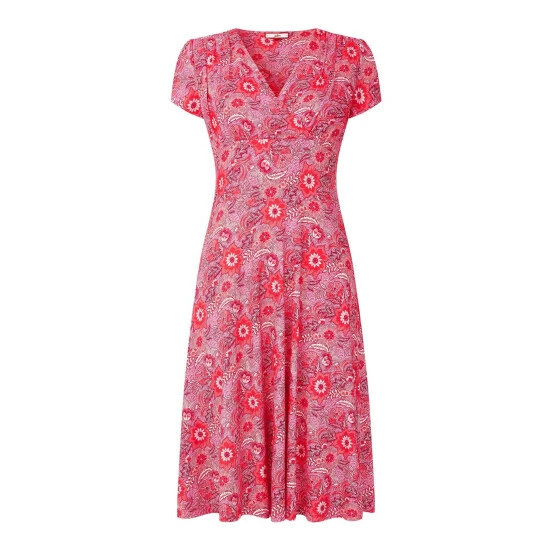 Our take on a retro styling, this dress makes a real statement. Bright, bold and beautiful, the deep waistband and gentle pleats really complement the striking pattern, creating something that’ll leave you feeling truly remarkable. Try layering it with a cardi on cooler afternoons, or a leather jacket to add an edgy vibe to this feminine piece.