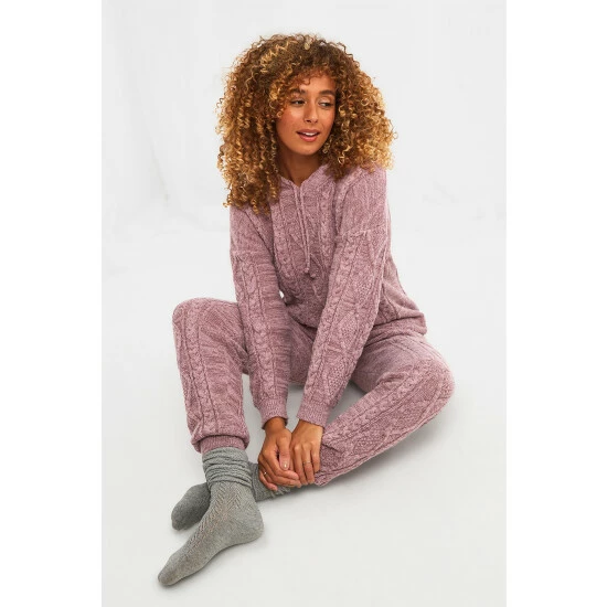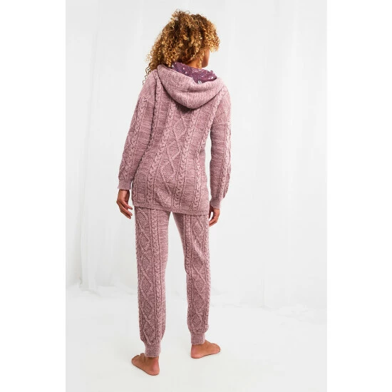 Brighten your loungewear with this cute, cable knit hoodie. Matching trousers available. Knitted Fabric. Approx Length: 70cm.