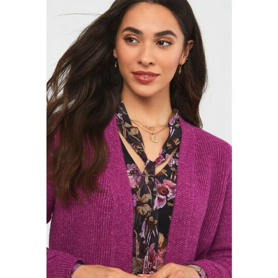 Add a burst of colour to your winter wardrobe with this long-sleeved violet cardigan.Knitted Fabric. Approx Length: 51cm.